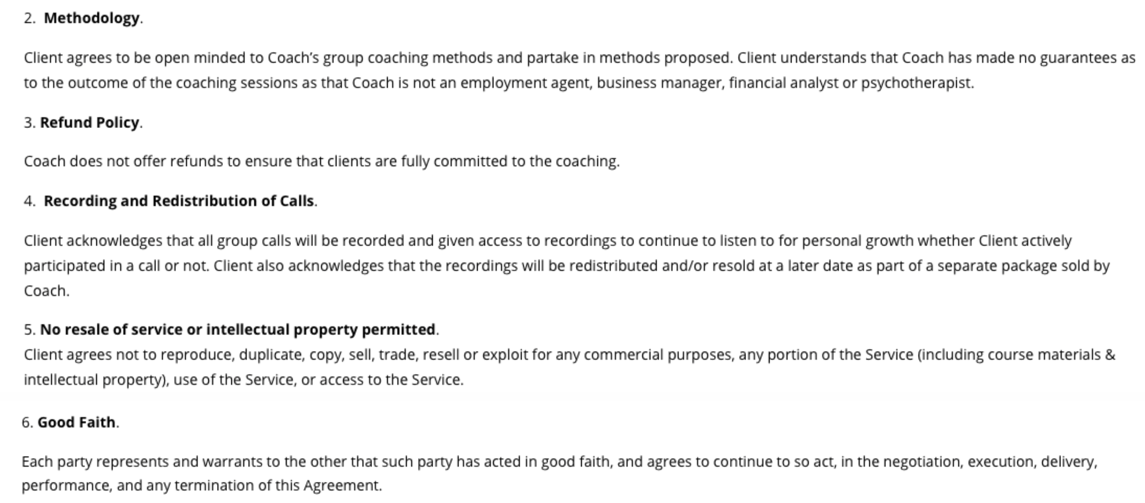 In consideration of the mutual covenants set forth in this Agreement, Client (Payer) and Coach (Debra Santangelo Ltd) hereby agree as follows: